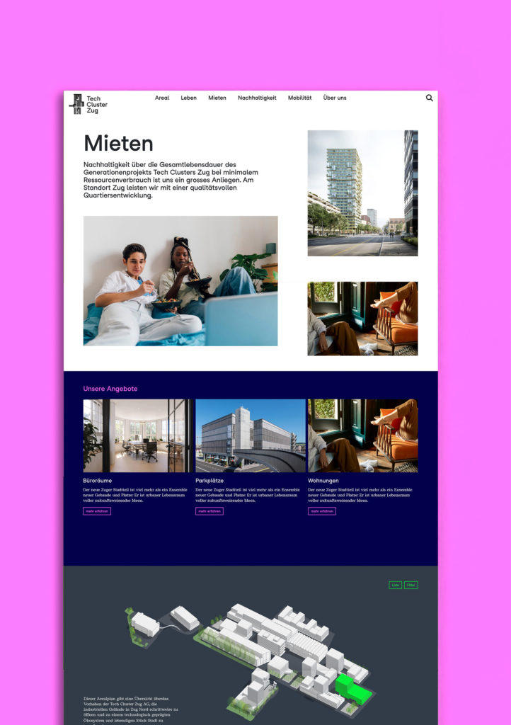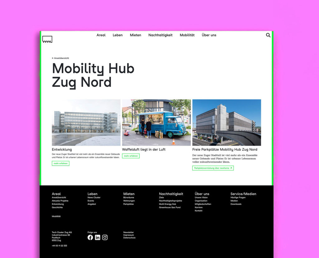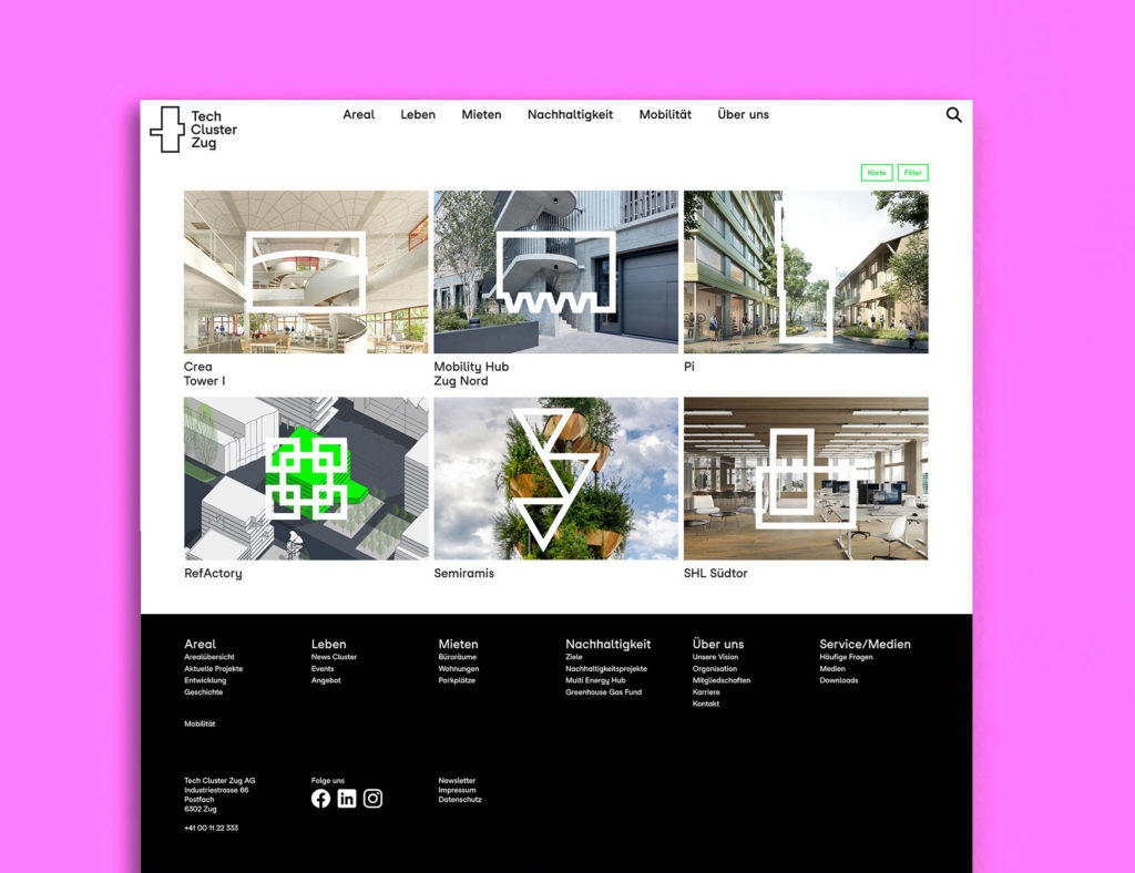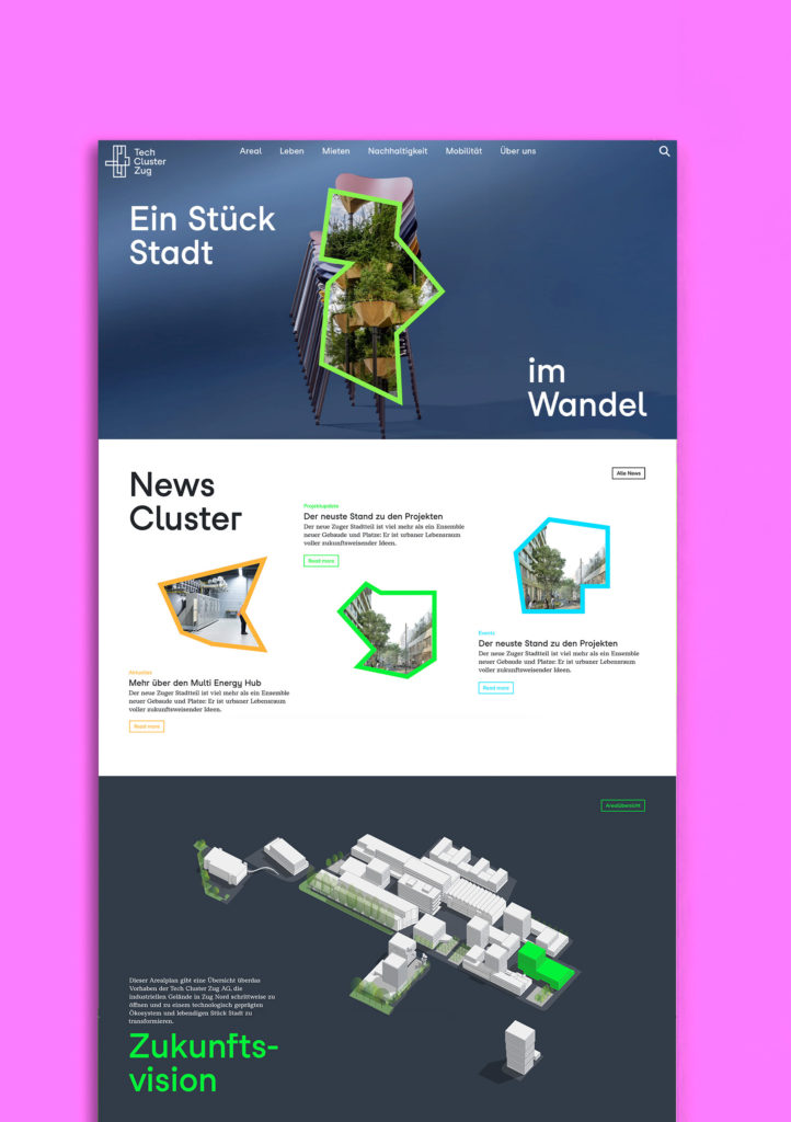 Im Rahmen meiner Tätigkeit bei Kobal Grafik GmbH haben wir im Team basierend auf der bestehenden Marke der Tech Cluster AG eine Weitereintwicklung des Brands vorgenommen. Dabei wurde besonders das bestehende Logo im gewünschten Rahmen optimiert und als Keyvisual für die durchgehende Markenstrategie verwendet. Zusätzlich haben wir ein Bildkonzept entwickelt, welches die thematischen Schwerpunkte des Areals verbinden. Weiter haben wir im Team anhand einer Informationsarchitektur, Wireframes und ein visuelles Design für die Webseite entwickelt.